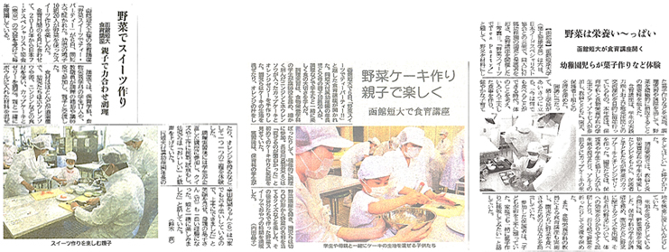 函館短期大学の一般の方を対象とした食育講座は、今回で6回目の取り組みでした。大きな怪我や事故もなく、無事に終了いたしました。本講座へのアンケートの集計結果からは、親子ともに満足度がとても高いことが伺えました。今回の食育講座を経て、学生ボランティアは、実際に子どもたちを指導する難しさや準備の大切さを感じるとともに、子どもと触れ合う楽しさや、講座を成功させた達成感を十分に味わうことが出来たようです。これから各施設で実習を行う学生たちは、今回の講座を通して、栄養教諭や幼稚園教諭、保育士になるという自分たちの目標がより明確になったのではないかと思います。